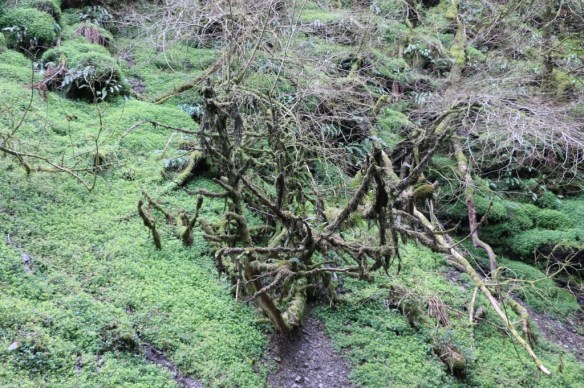 The sunny day disappeared as we walked through the short steep-sided gorge – following in the footsteps of Victorian touristto the Water-Break-its-Neck waterfall, around a mile from the village of New Radnor ( Maesyfed – the Welsh name), in the county of Powys,Wales.