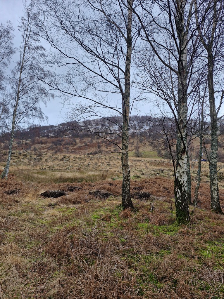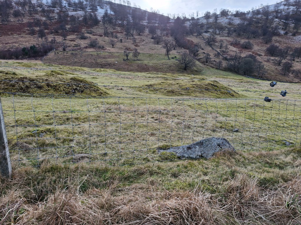 There is little to be seen of the old Rannoch village. But we were lucky enough to chat with an elderly man who explained that there were possible plans for another archeological dig being planned. And that the mounds were the remains of a settlement: three prehistoric roundhouses, two larger early historic monumental roundhouses, and five medieval longhouses. He also said that in the 1990s, archaeological digs at Bunrannoch had discovered some bronze axes, and that, in the nineteenth century, a bronze armlet, a form of Scottish Iron Age jewellery belonging to aristocracy and a symbol of power and prestige in the first and second centuries AD, was found. Artefacts all now in collections in the National Museum of Scotland.
