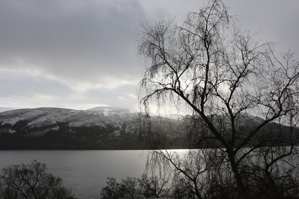 It truly is a wonderful place to stay, with every one of the lodges overlooking Loch Rannoch. The Photographer took this photo on our first night we arrived. We were hooked! It snowed, but soon cleared and we had four glorious days. The Triangle walk was an easy morning’s stroll that we found on the third day.