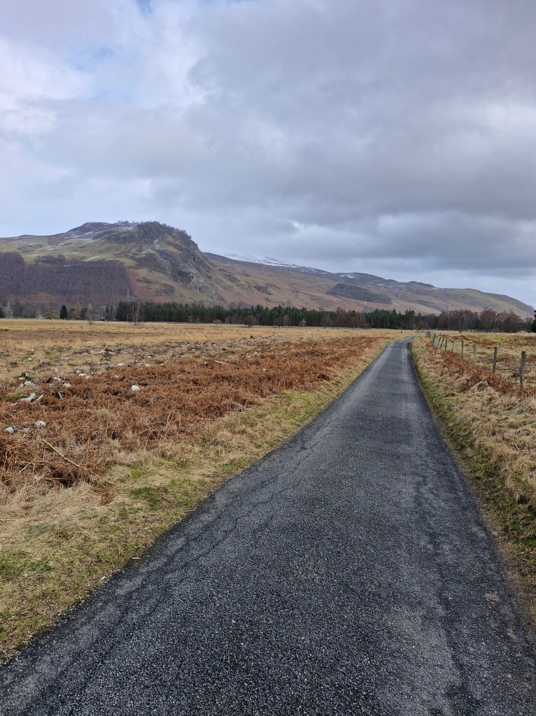 The Triangle walk is exactly what it says: we headed south from the loch to Kinloch Rannoch. Following our map, we left the village and walked along a lane for half a mile along the road that eventually leads to Aberfeldy.