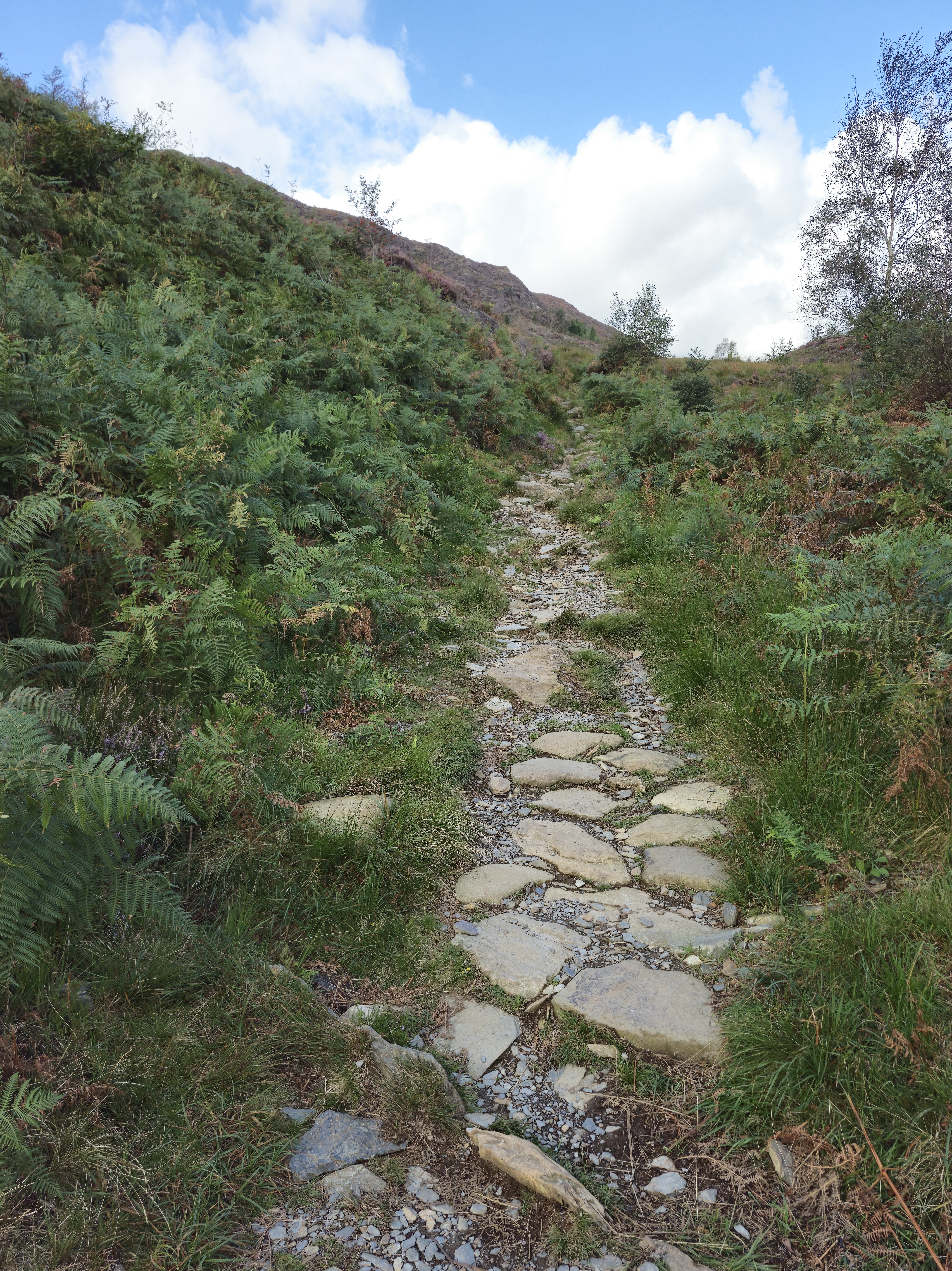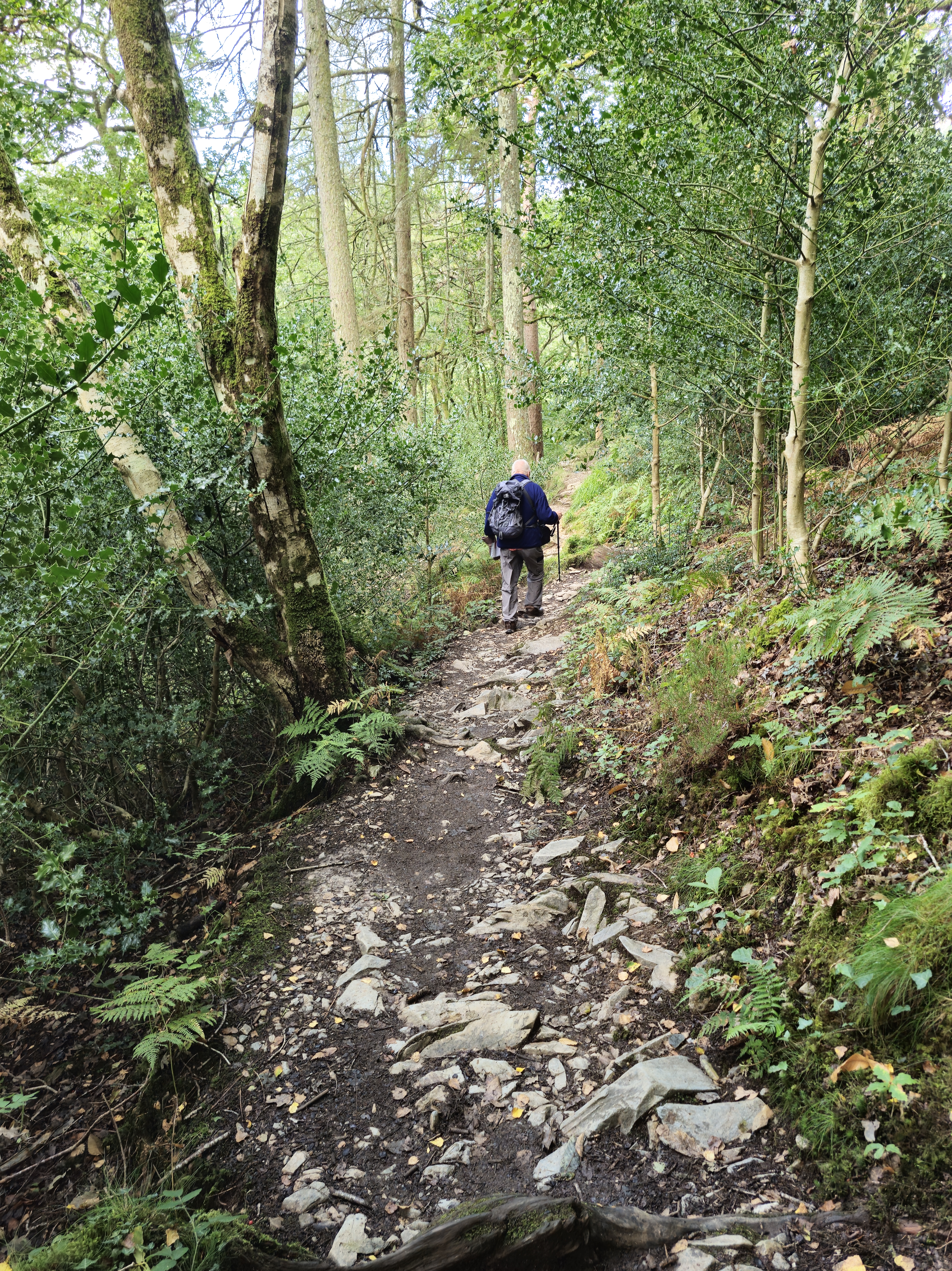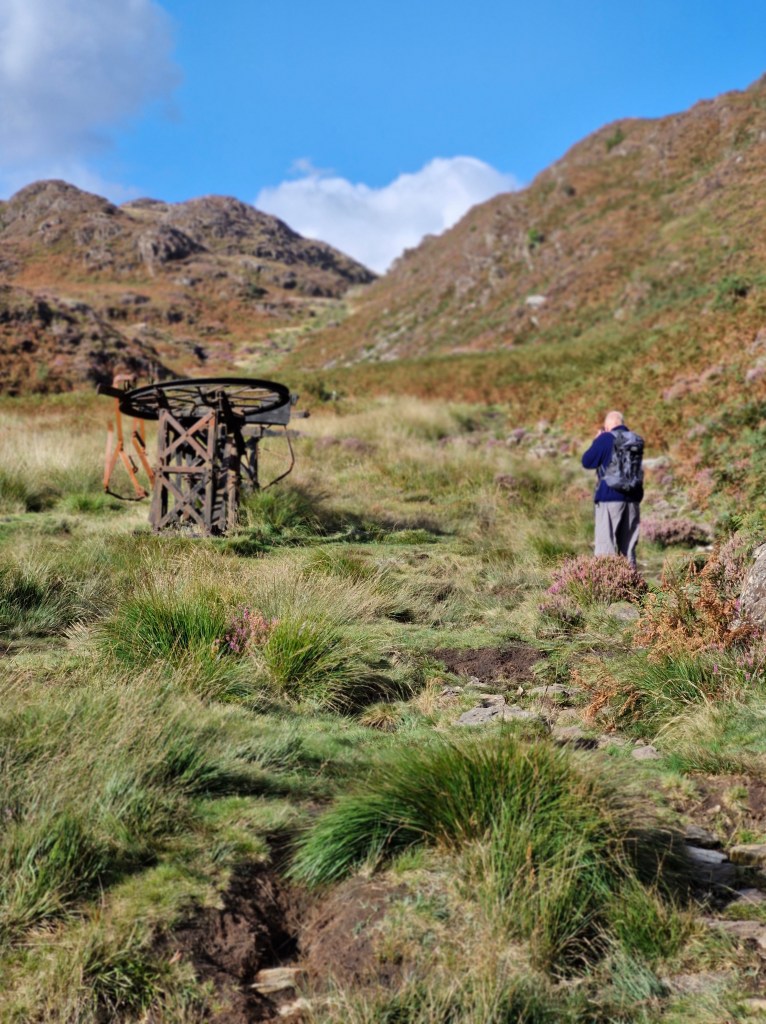We stopped for lunch, debating at this point on whether we’d gone as far as we should (could!) Just then two couples passed, going back down. ” That’s us done,” said one of the men. “We know when we’re beaten. Off for a pint.” They were about twenty years younger than us. We looked at one another, made our decision; if going any further was too much for them, we had no chance. We packed up our things.