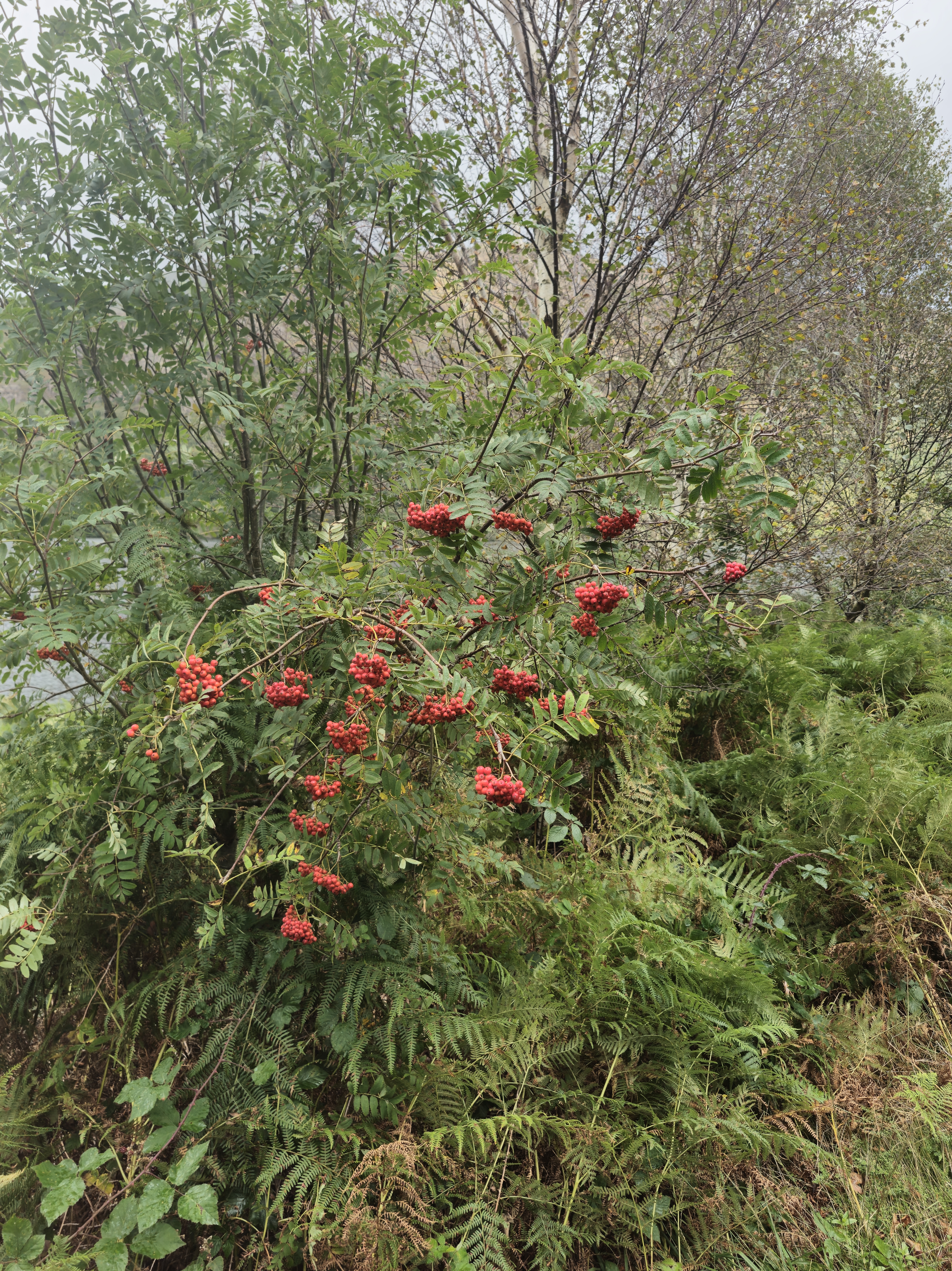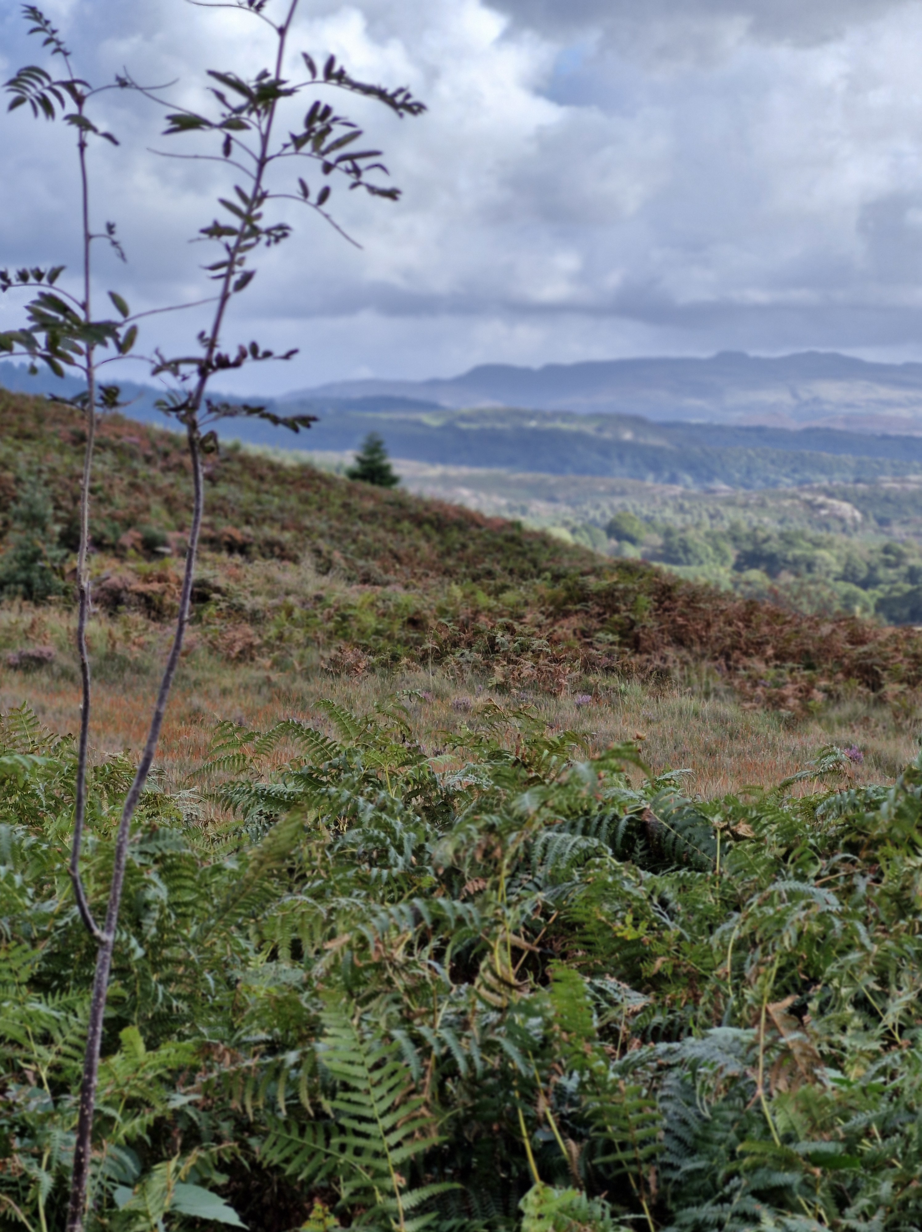 At first the path was a meandering course on spiky grass with golden brown ferns set in a landscape of small outcrops and boulders. (Later in the day, having coffee in a small cafe, we met three young climbers who told us that these boulders were called erratics, glacial boulders or rocks that have been transported by ice and deposited. The type of rock – the lithology – the physical, chemical, and mineralogical properties – that the glacial boulder is made from is different to that of the bedrock where it’s been deposited.) We live and learn!