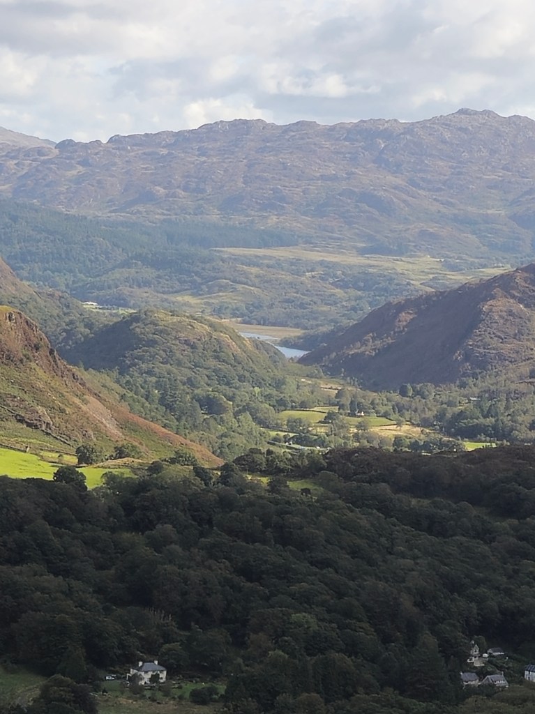 As we climbed,I took advantage of every photo stop, as usual. (my ‘catching my breath’ time). The landscape was glorious. And there, in the distance, was Llyn Dinas.