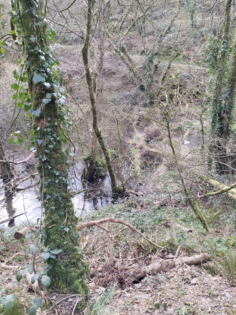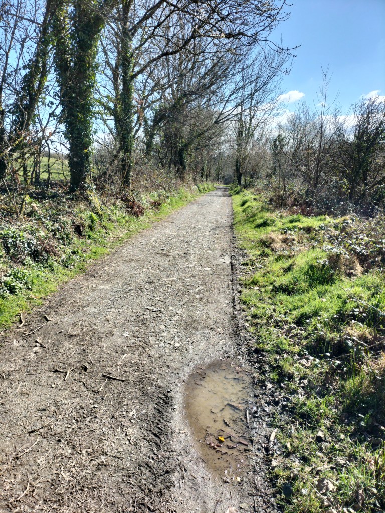 The track did narrow a bit indeed. As the directions said, ‘…into a steep narrow footpath, less than forty centimetres wide (that’s about sixteen inches in old money) in some places, on an unmade and uneven surface, where you can expect mud, rocks and tree roots.‘. The embarrassing thing is, just as I was wobbling leaping gazelle-like from rock to another a young couple (stressing young here!) ran past… with a dog … very quickly.And they even had the breath to wish us a cheerful “good morning.”